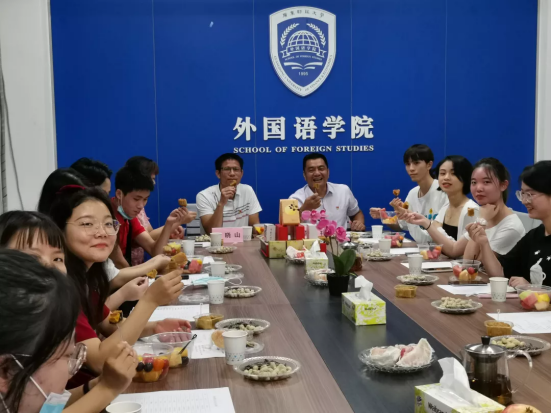 茶话会上,谭玉祥、黄晓山十分关心同学们的学习生活情况,向同学们致以节日祝福和问候。谭玉祥以亲身经历分享自己家乡的中秋习俗,告诉同学们“饮水当思来之不易”,呼吁大家珍惜现在的幸福生活,并在讲话中为同学们分析了目前学院员工的就业情况。他说,学院下来将强化就业指导工作,为外院学子与优秀企业等牵线搭桥,拓宽就业路径,加深行业认识,明确就业方向,希望同学们做好未来规划,努力实现毕业即就业、就好业的目标。同学们深刻感受到老师们的幽默风趣和无微不至的关怀,也在聚会中收获了思考,消除了困惑,进一步明确了今后的发展方向。