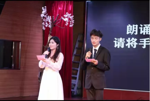 20级日语2班的吴家丽、康晓明两位同学则带来了一首日语诗歌《春の临终》。优美的韵律和言语,传达了一种春将逝去的淡淡忧伤。在和平一样时的清晨,虽然春天留在了昨天,可是“我把活着喜欢过了”。
